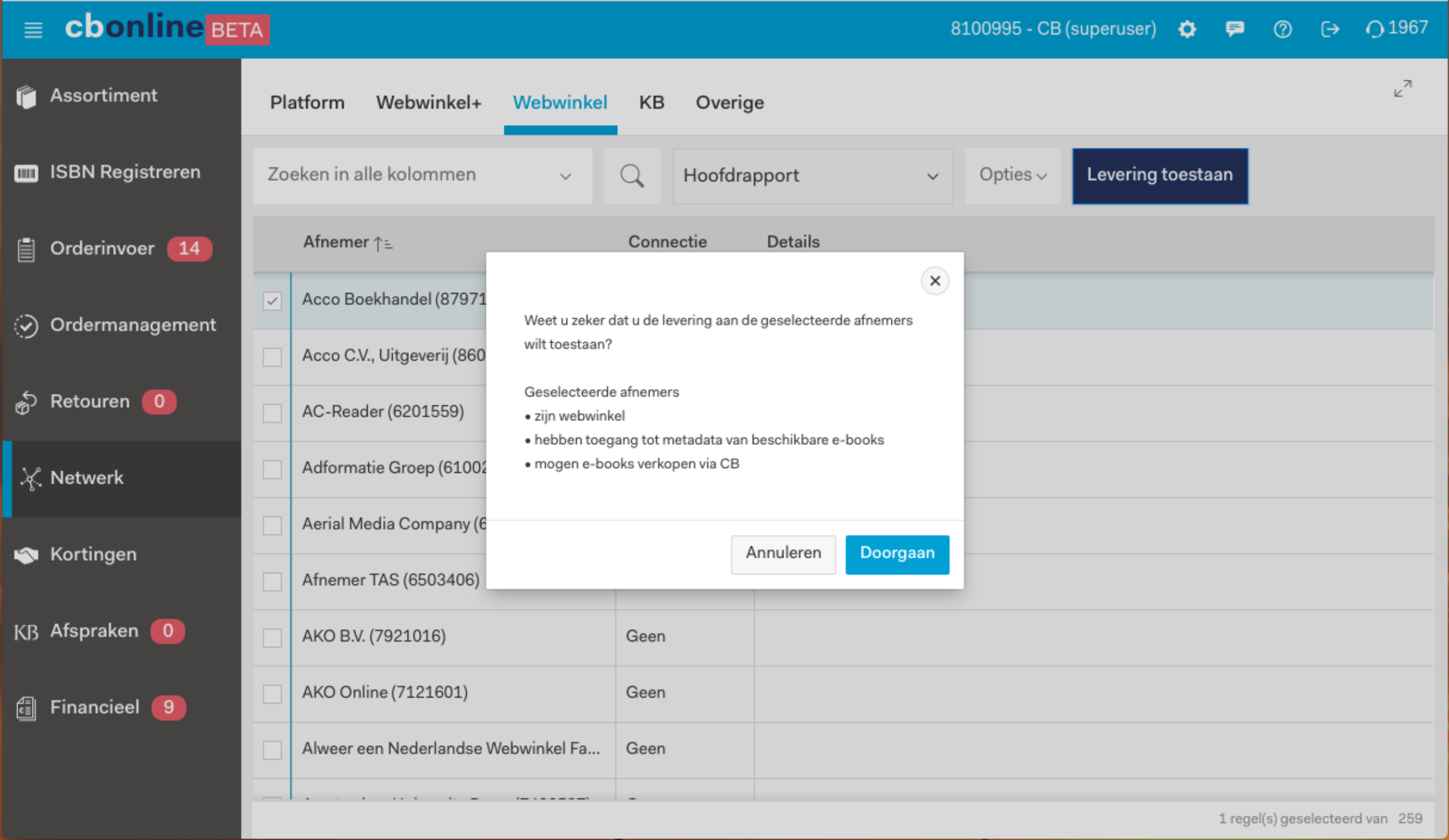 U heeft het misschien al gezien als u inlogt in CB Online Uitgeverij: u kunt kiezen voor het vertrouwde CB Online en voor CB Online Bèta. CB Online Bèta is de nieuwe versie van CB Online die wij steeds verder verbeteren en uitbreiden. Gemakkelijker, sneller en met meer functionaliteit. Probeer de Bèta-versie en geef uw feedback!