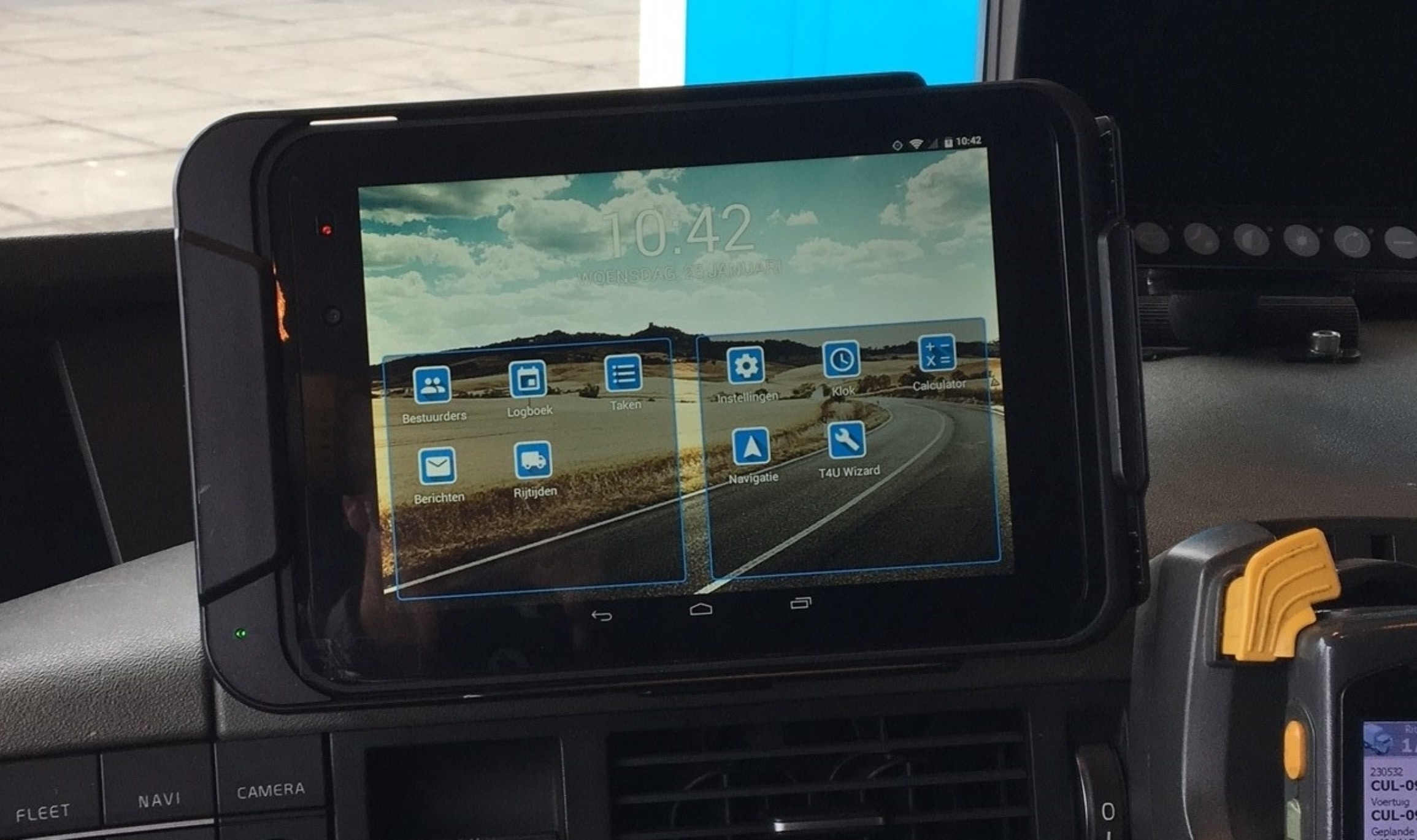 De nieuwe boordcomputer is een tablet van Trimble. Belangrijke voordelen zijn: stabiliteit, betere navigatie, overzichtelijke interface en betere informatievoorziening naar onze klanten. Ook de informatie-uitwisseling met externe chauffeurs die rijden in opdracht van CB is veel gemakkelijker.