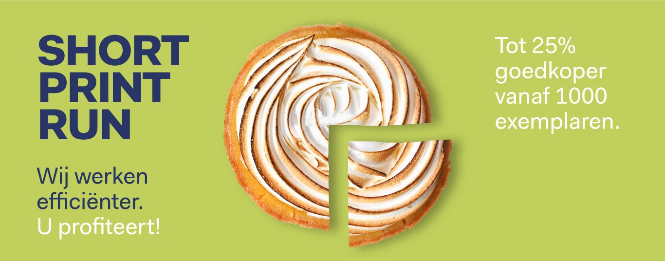 Met Short Print Run heeft u snel een nieuwe oplage op voorraad – zo grijpt uw klant nooit mis. Razendsnel geproduceerd in onze eigen printstraat. En nu vanaf 1.000 exemplaren, tot 25% voordeliger!